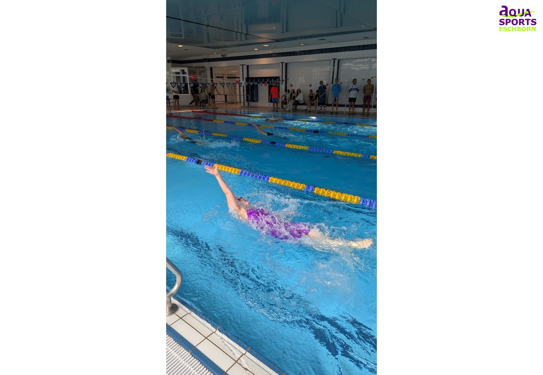 Auch ohne Wendebleche konnten unsere Sporttreibenden starke Leistungen abrufen. Für den einen oder die andere waren die Starts die ersten seit langer Wettkampfpause oder aber die ersten im Wettkampfbereich überhaupt. Die Carvalho-Zwillinge (Jg. 2005) erschwammen beide Vereinsrekorde: Marta holte sich den weiblichen Rekord über die 50m Brust in einer Zeit von 00:34,97 zurück, Tomas verbesserte die männlichen Rekorde über 50m Freistil in 00:23,74 und über 100m Freistil in 00:53,66 Mit insgesamt 13.733 Punkten sicherten wir uns als Aqua Sports Eschborn den 4. Platz in Hessen.