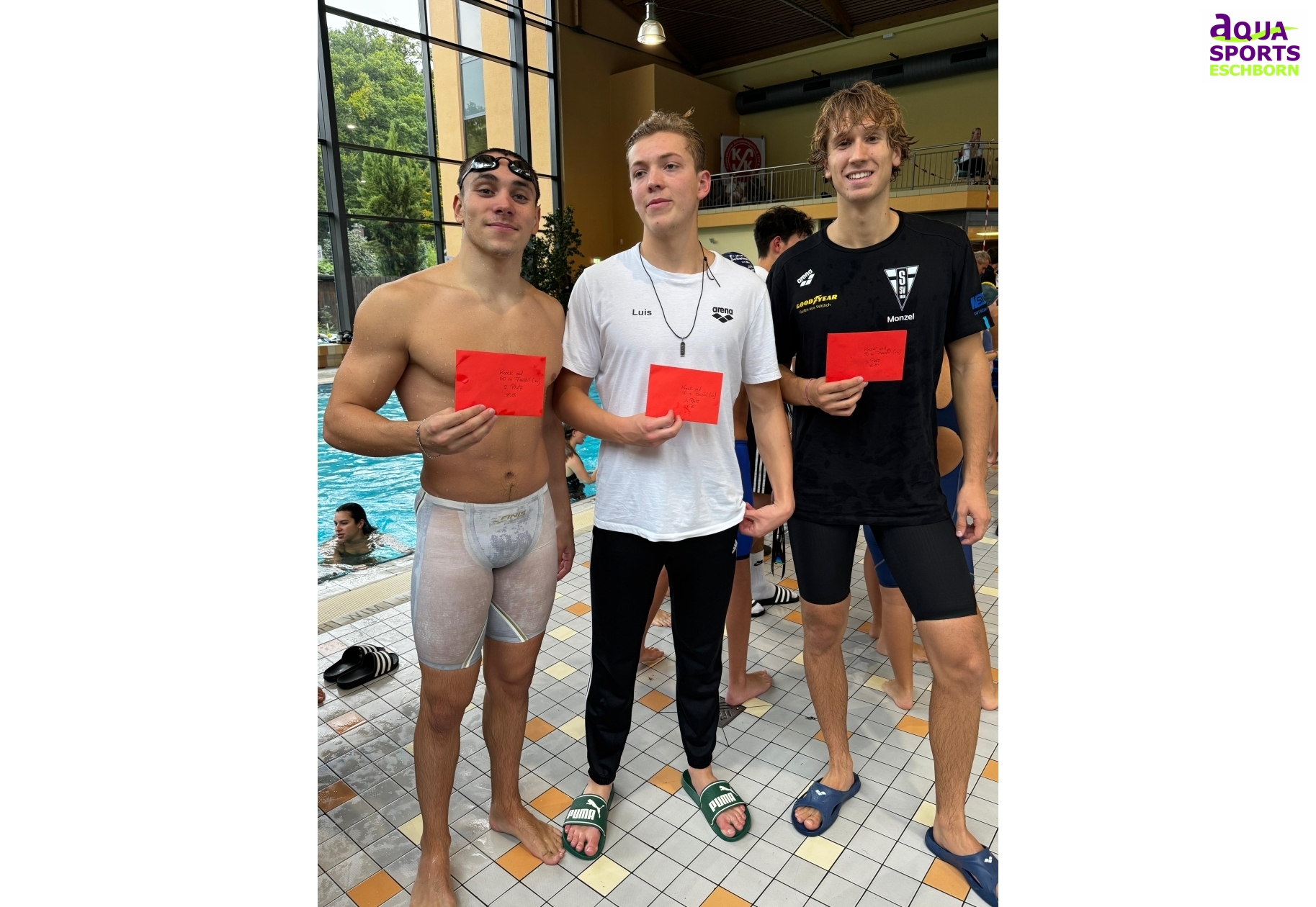 Vom ASE erreichten drei unserer Teilnehmenden die Knock-out Sprints. Julius Moslener (Jg. 2008) sicherte sich den 3. Platz, nachdem er sich zuvor mit Vereinsrekord (männlich) 00:29,90 über die 50m Brust qualifizierte. Auch Marina Reiber (Jg. 2008) schwamm im regulären Wettkampflauf über die 50m Brust Vereinsrekord (weiblich) 00:35,02. Sie sicherte sich einen herausragenden Finalplatz und holte die Silbermedaille nach Hause. Ebenfalls einen 2. Platz im Finallauf erzielte Tomas Carvalho (Jg. 2005) über die 50m Freistil. Hierfür hatte er sich zuvor mit dem Saisonrekord von 00:23,92 über seine Paradestrecke qualifiziert.
