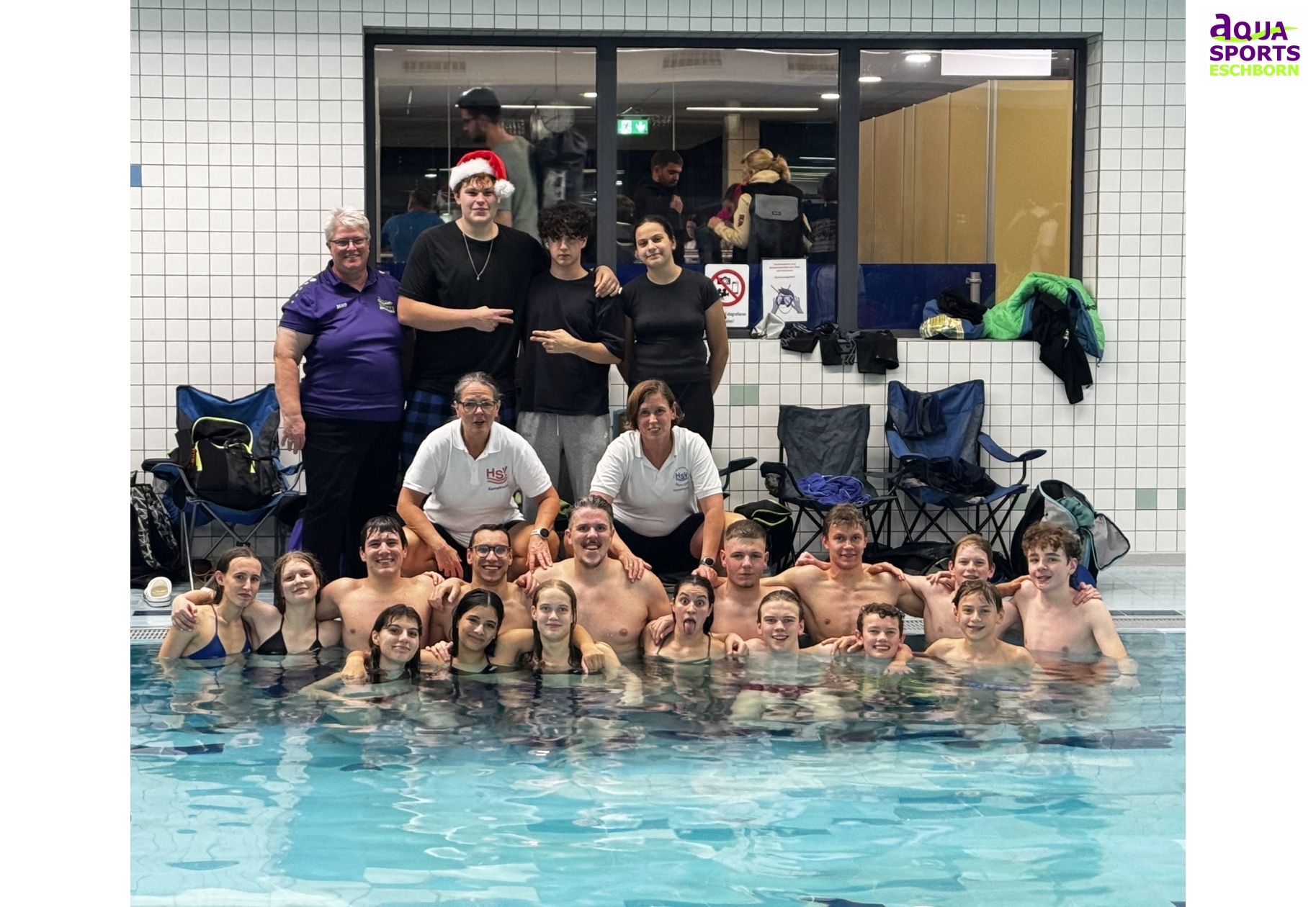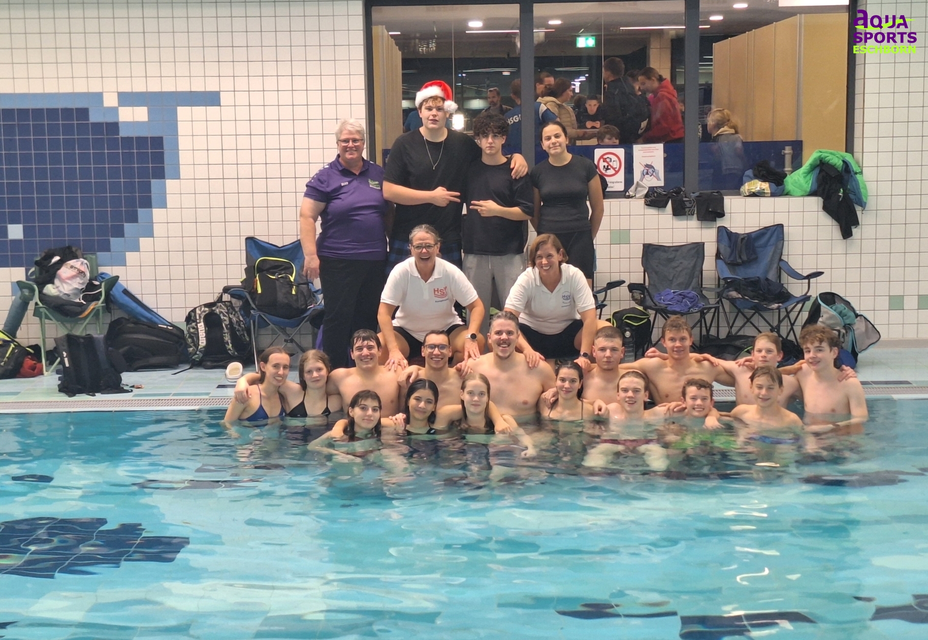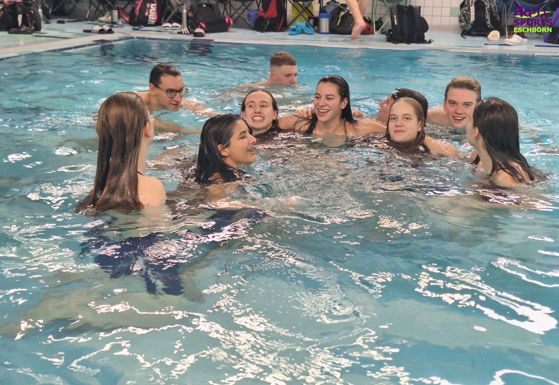 Zum Abschluss dieses besonderen Wettkampftages durfte natürlich das traditionelle „Ausplanschen“ im warmen Becken nicht fehlen. Nach einem langen Abend voller sportlicher Leistungen bot das entspannte Plantschen noch einmal eine willkommene Möglichkeit, gemeinsam Spaß zu haben und den Wettkampf in lockerer Atmosphäre ausklingen zu lassen.