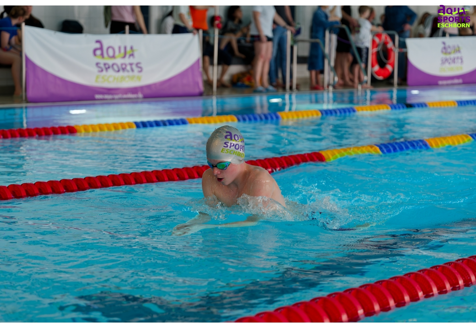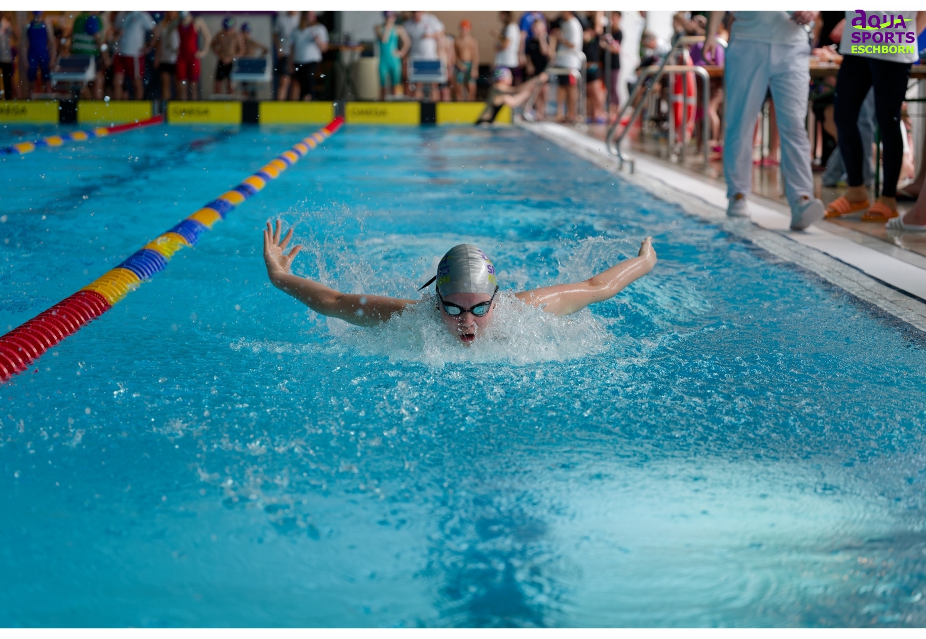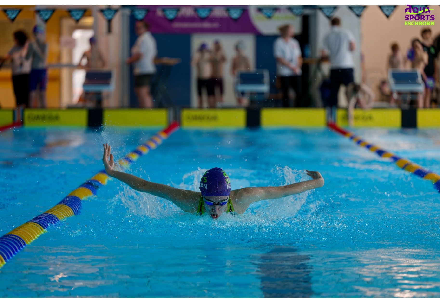 Am Wochenende des 14./15. März 2026 richtete Aqua Sports Eschborn (ASE) seinen 18. vereinseigenen Nachwuchspokal aus. Der Name ist hier Programm: Besonders für jüngere Schwimmende möchte ASE die Möglichkeit bieten, erste Wettkampferfahrungen zu sammeln. Ganz nach dem Motto „Mit Spaß zum Erfolg“ gibt es Staffelwettkämpfe, Finalläufe über die 50m-Strecken und 25m-Wettkämpfe für die jüngsten Teilnehmenden. Ab Jahrgang 2019 konnten die Kleinen hier beim Nachwuchspokal teilnehmen.