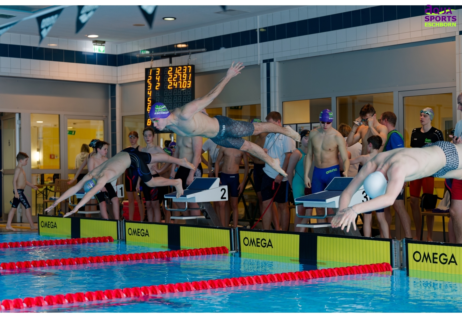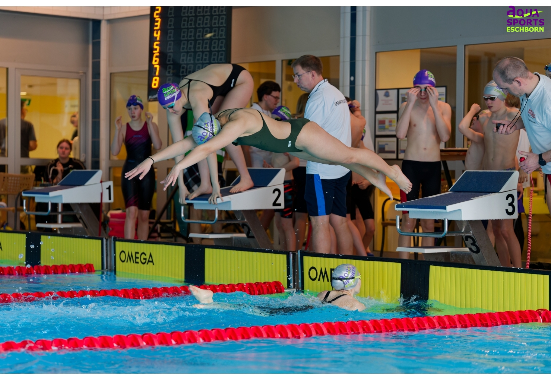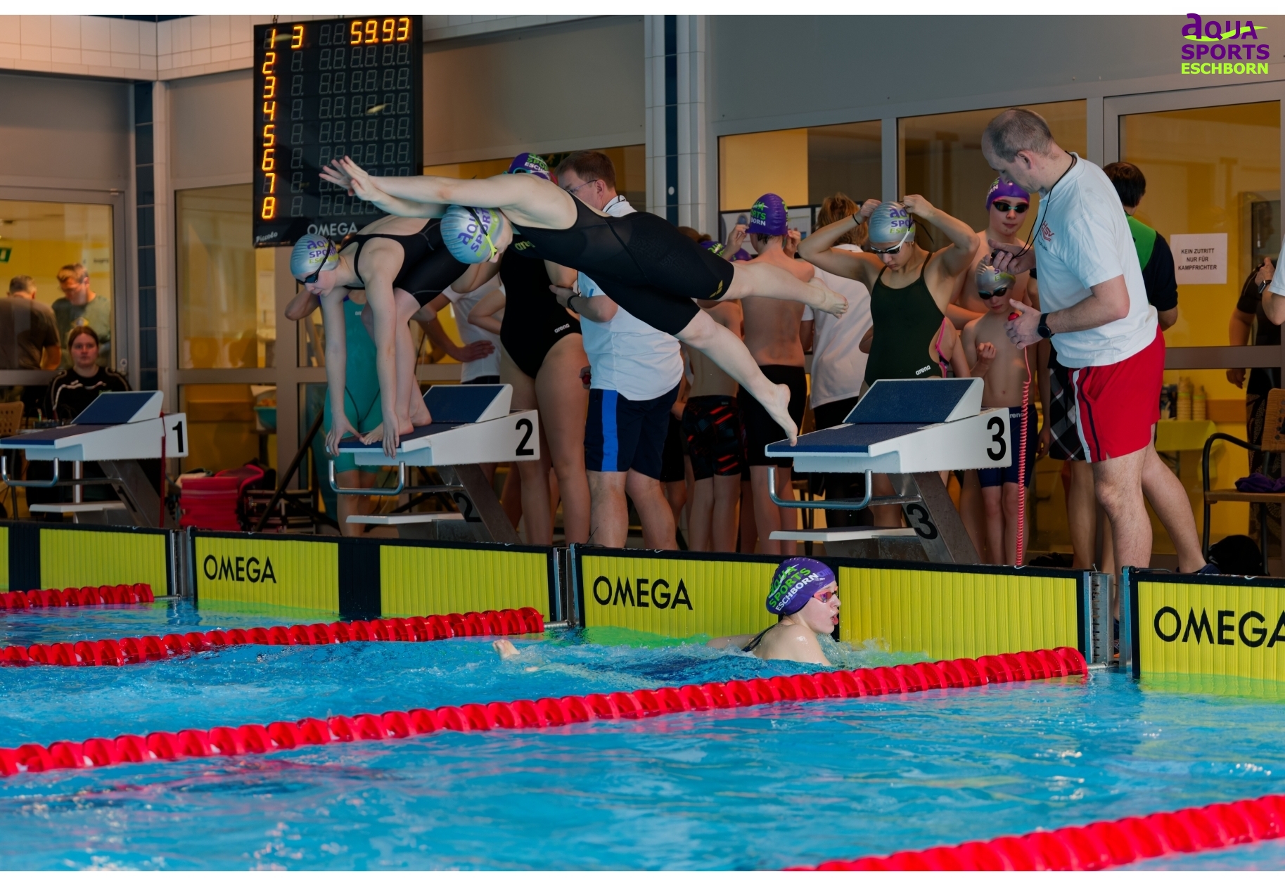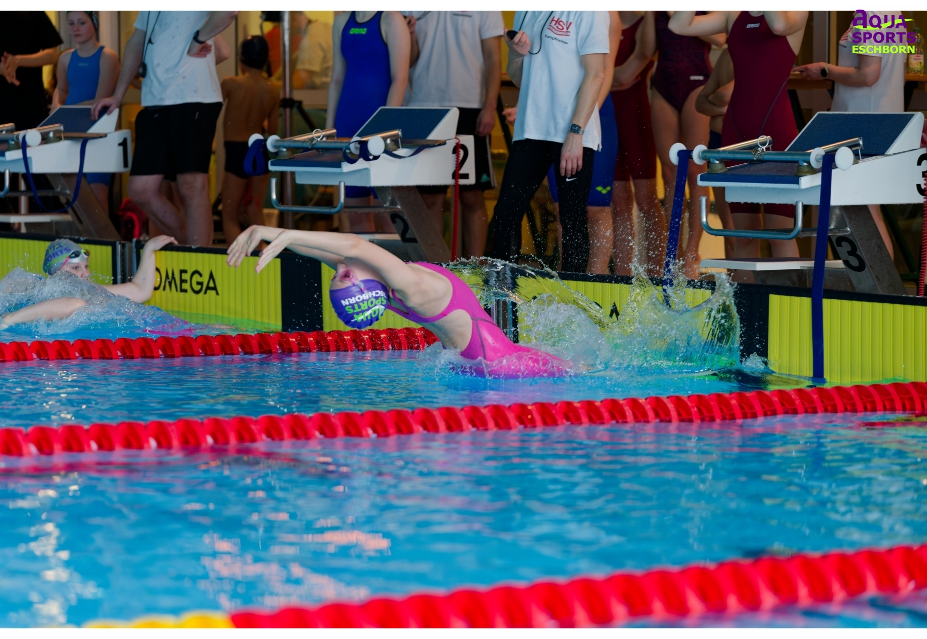 Am Wochenende des 14./15. März 2026 richtete Aqua Sports Eschborn (ASE) seinen 18. vereinseigenen Nachwuchspokal aus. Der Name ist hier Programm: Besonders für jüngere Schwimmende möchte ASE die Möglichkeit bieten, erste Wettkampferfahrungen zu sammeln. Ganz nach dem Motto „Mit Spaß zum Erfolg“ gibt es Staffelwettkämpfe, Finalläufe über die 50m-Strecken und 25m-Wettkämpfe für die jüngsten Teilnehmenden. Ab Jahrgang 2019 konnten die Kleinen hier beim Nachwuchspokal teilnehmen.